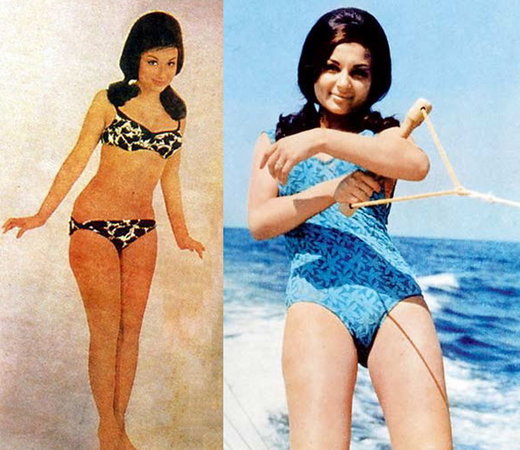आज के समय में टू –पिस पहनने कोई बड़ी बात नहीं है.पर 60 से 80 के दहाके में इसको पहना ठीक नहीं समझा जाता था . उस समय शर्मिला टैगोर पहली अभिनेत्री थी जिसको टू पीस में फोटो शूट करवाया था .बताने वाली बात यह है कि शर्मिला सैफ अली खान की मां है .1966 में फिल्मफेयर मैगजीन के अगस्त अंक के कवर पेज में शर्मिला बिकनी में नजर आई थी.