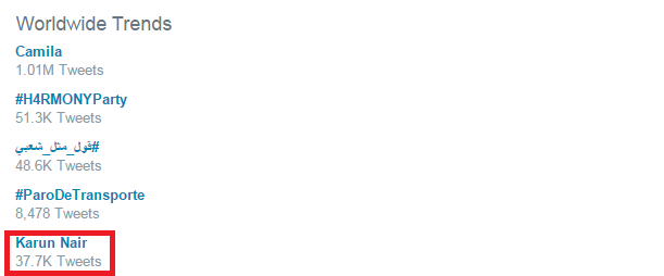 इस पारी के बाद करुण नायर पूरे ट्विटर पर छाए हुए थे और वह ट्रेंडिंग सेक्शन में भी थे।हर व्यक्ति करुण नायर की प्रशंसा करता नज़र आया।