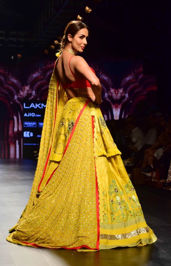 बॉलीवुड की मशहूर अभिनेत्री मलाइका अरोरा खान ने हाल ही में लैक्मे फैशन शो के दौरान एक फोटोशूट किया है जिसको लेकर वह पूरे सोशल मीडिया पर चर्चाओं में हैं। इस दौरान जैसे ही मलाइका रैंप पर उतरीं तो कोई भी अपनी नज़र उनसे हटा नहीं पाया। वह पूरे शो के दौरान आकर्षण का केंद्र बनी हुईं थीं। इस दौरान मलाइका की खूबसूरती देखने लायक थी। इस दौरान मलाइका ने पीले रंग का ब्लॉउस और लाल रंग की साडी पहनी हुई थी जो उनपर खूब जच रही थी। मलाइका ने लैक्मे के इस इवेंट की कुछ तस्वीरें अपने आधिकारिक इंस्टाग्राम अकाउंट पर भी शेयर की हैं जोकि लोगों को बहुत ही ज़्यादा पसंद आईं। मलाइका बहुत ही लंबे समय से बॉलीवुड से दूर हैं परंतु इस इवेंट के दौरान उन्होंने बताया कि यदि उन्हें अपना समय देने योग्य किसी फिल्म में काम करने का मौका मिला तो वह इसके बारे में ज़रूर सोचेंगी।